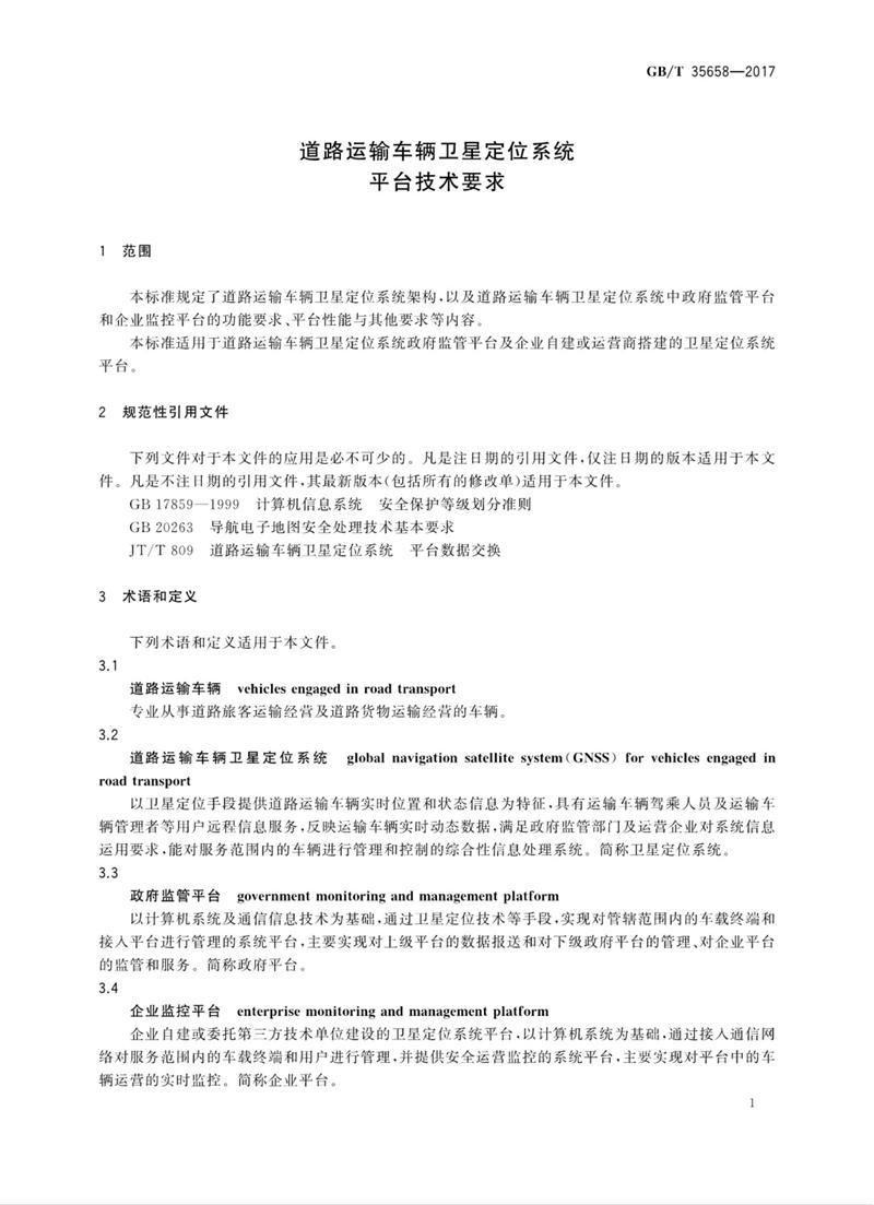 GBT35658-2017 道路運輸車輛衛(wèi)星定位系統(tǒng)平臺技術(shù)要求