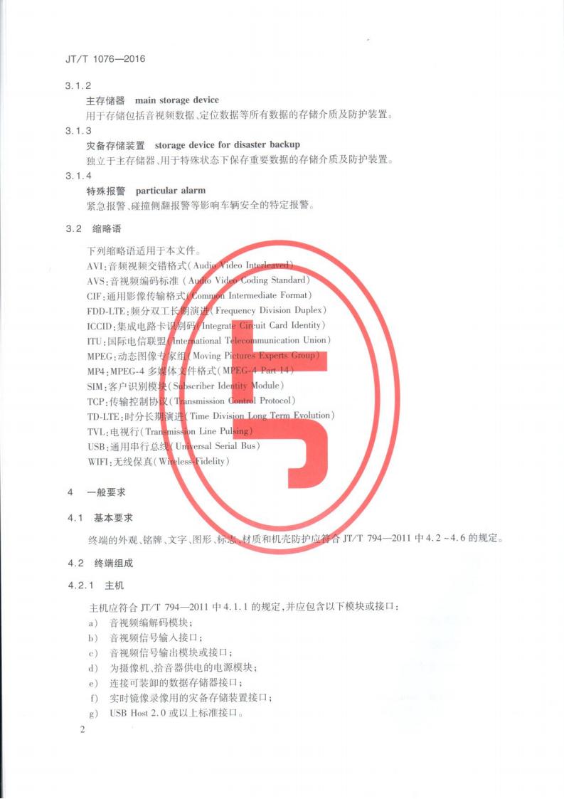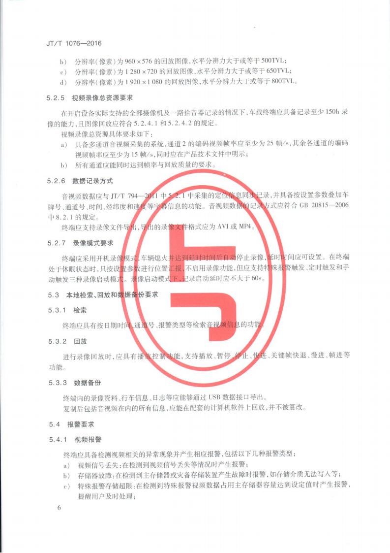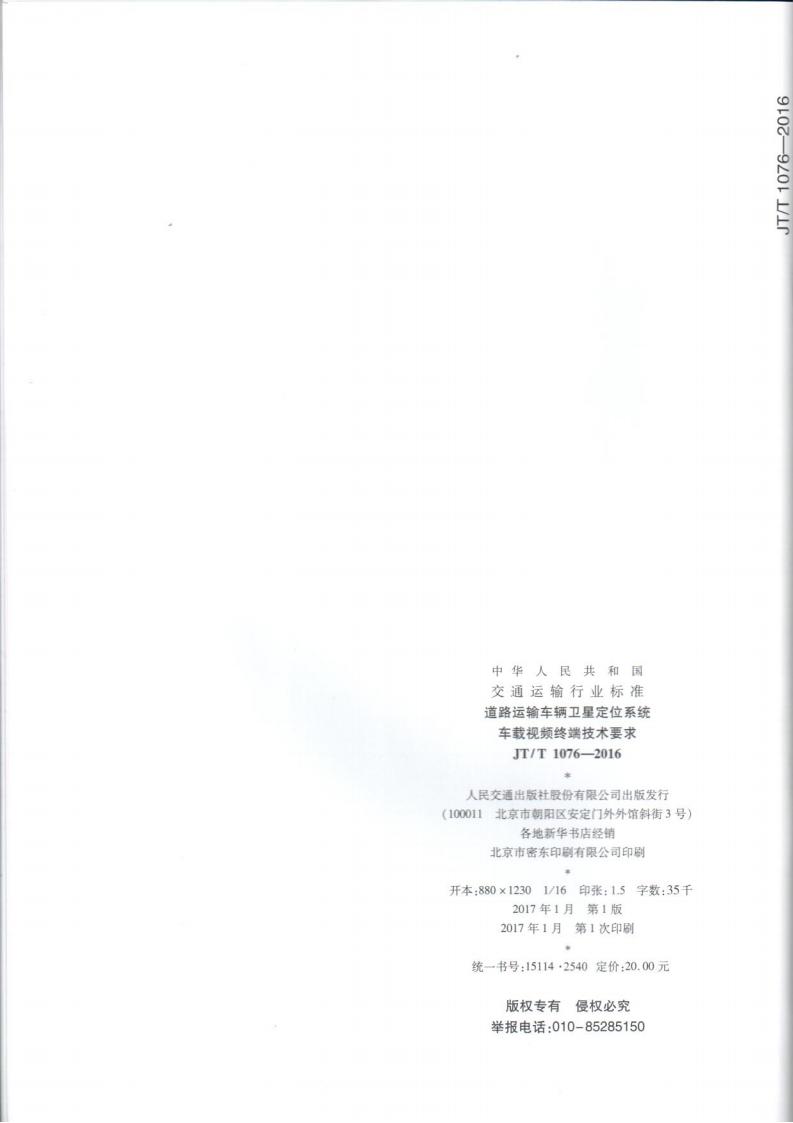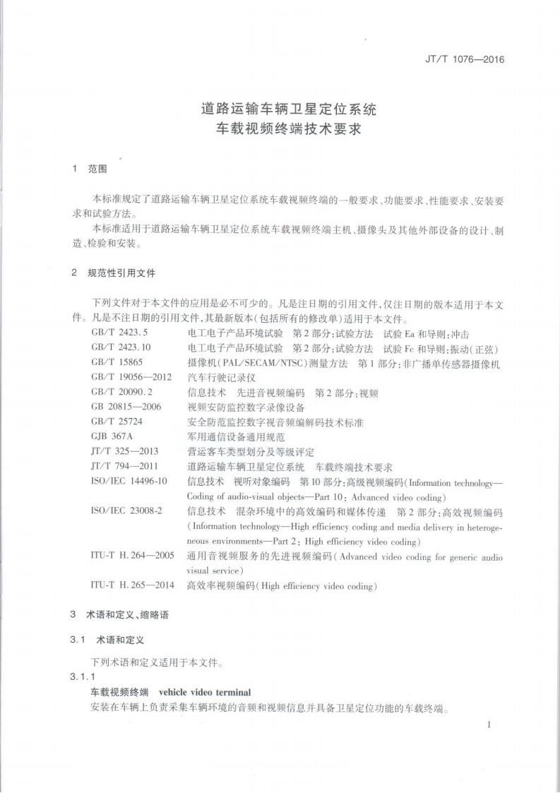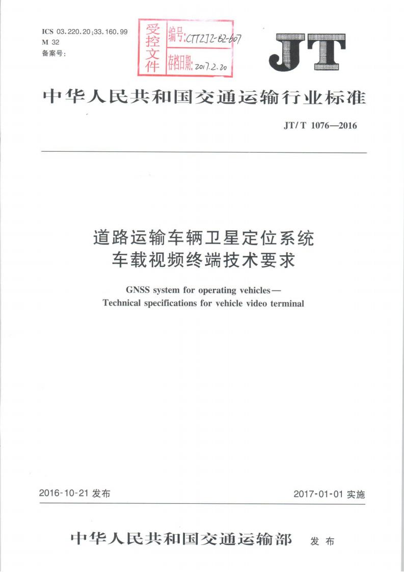 JTT 1076-2016 道路運輸車輛衛(wèi)星定位系統(tǒng)車載視頻(終端技術要求)