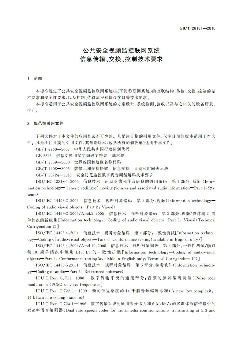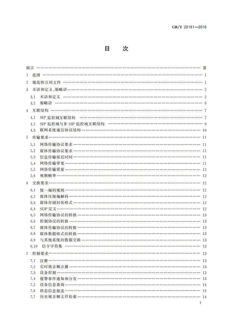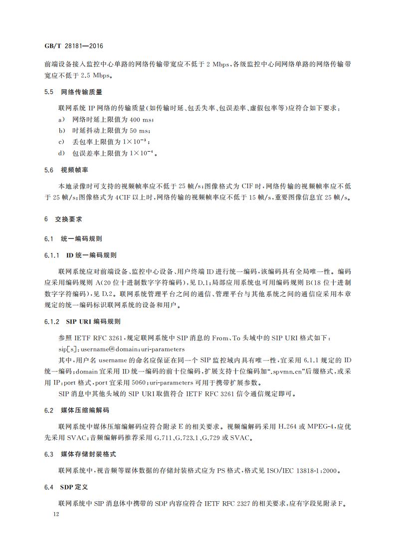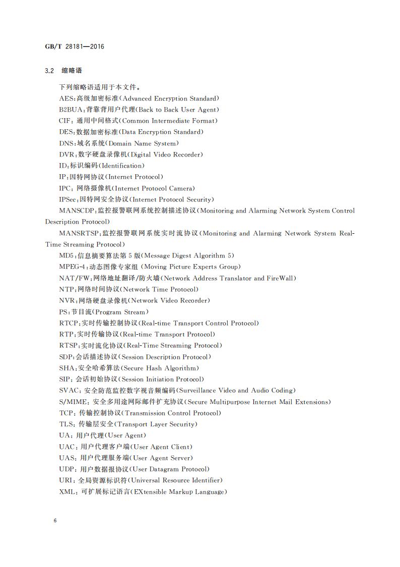 GBT28181-2016 公共安全視頻監(jiān)控聯(lián)網(wǎng)系統(tǒng)信息傳輸、交換、控制技術(shù)要求