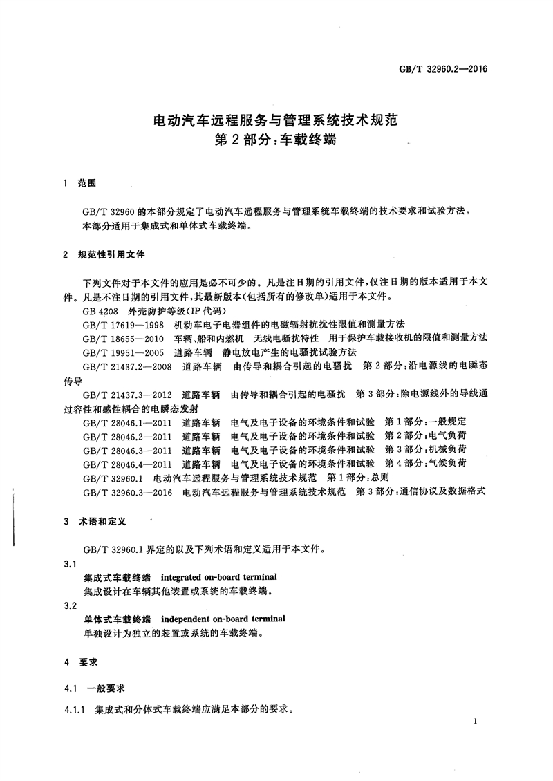 GBT32960.2-2016 電動汽車遠(yuǎn)程服務(wù)與管理系統(tǒng)技術(shù)規(guī)范(第二部分:車載終端)