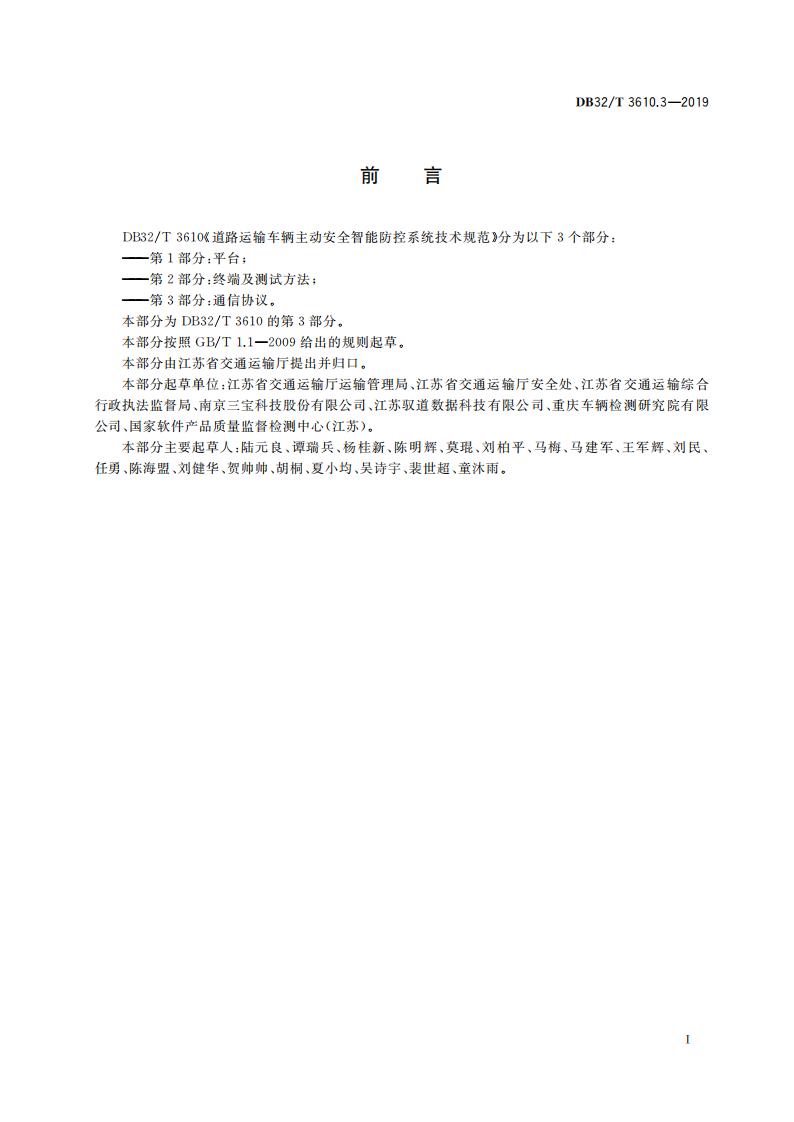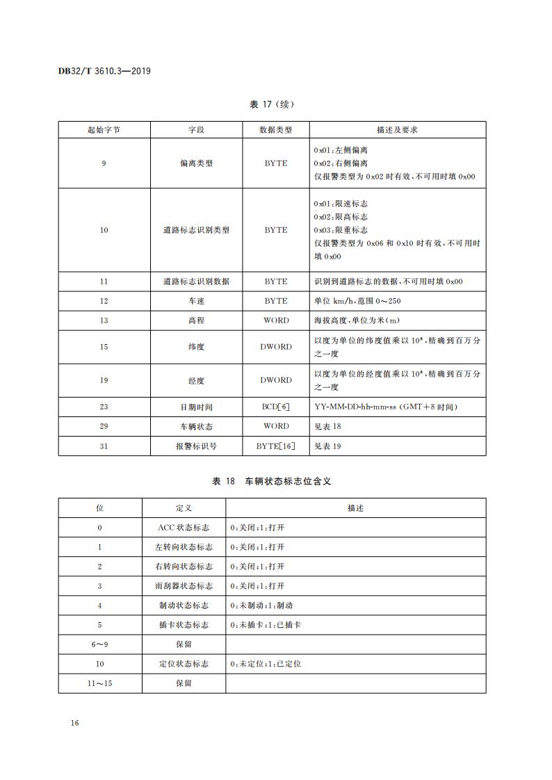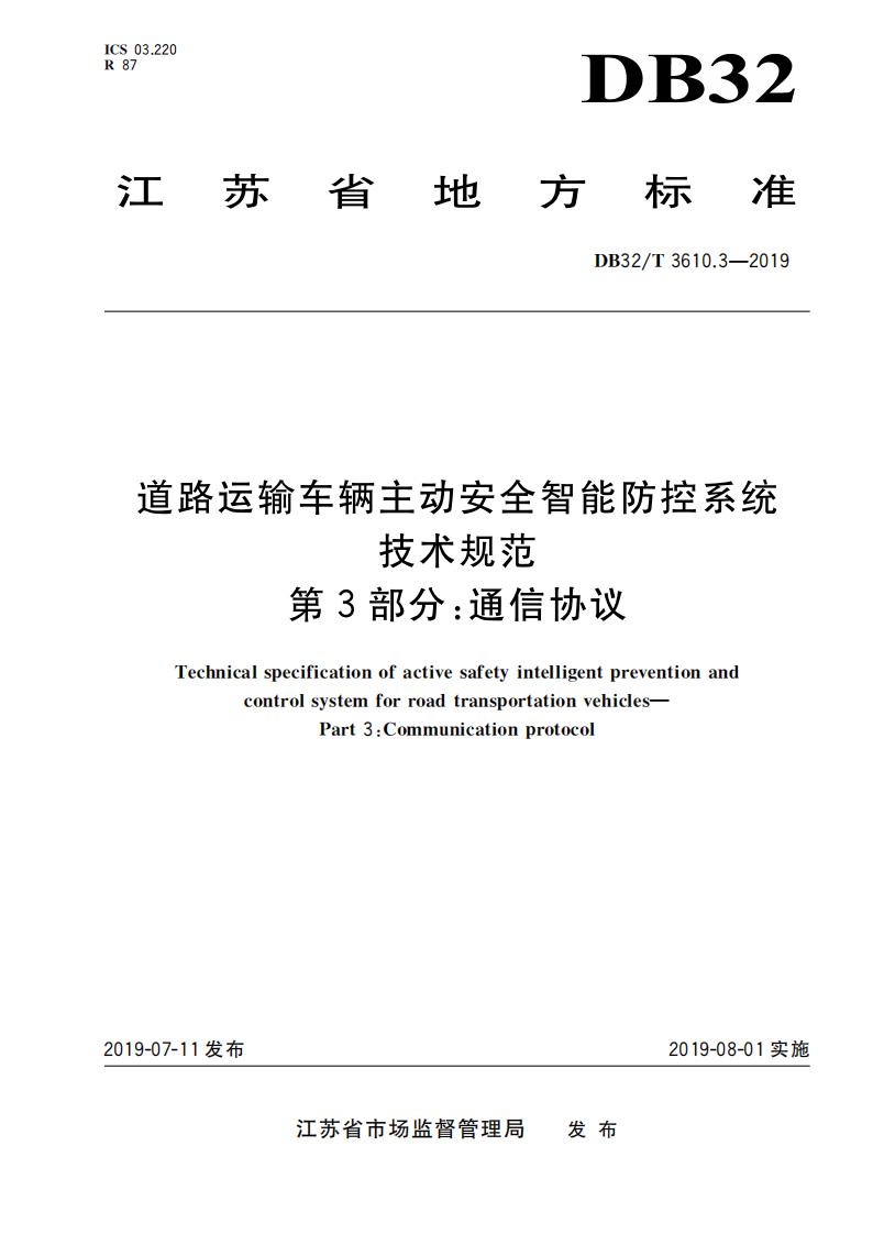 江蘇省 DB32T3610.3-2019 道路運(yùn)輸車(chē)輛主動(dòng)安全智能防控系統(tǒng)(通信協(xié)議規(guī)范)