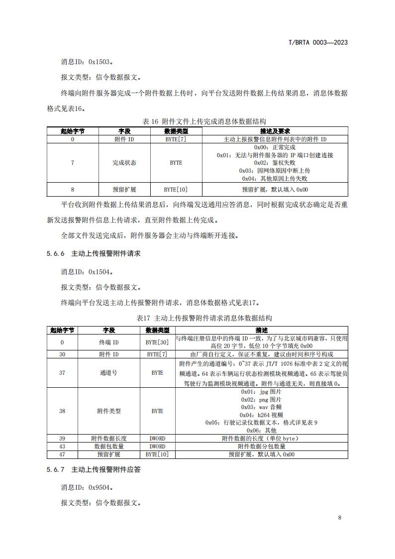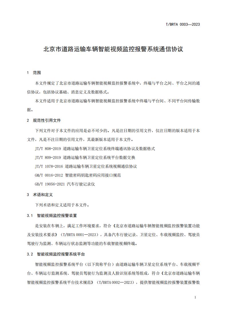 北京市 道路運輸車輛智能視頻監(jiān)控報警系統(tǒng)通信協(xié)議