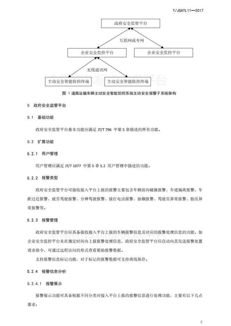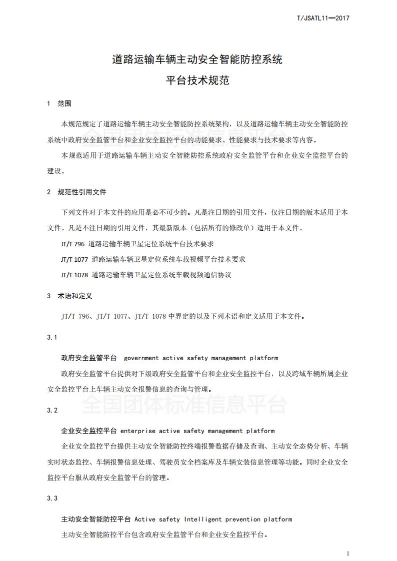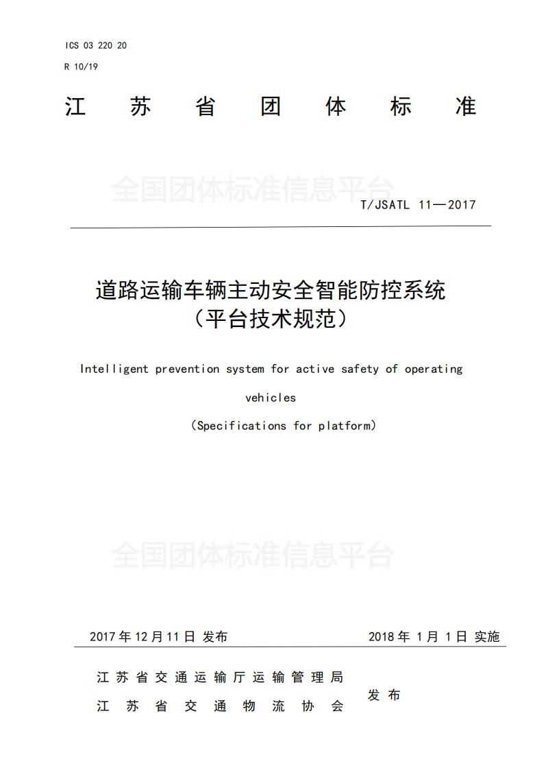 江蘇省 TJSATL 11-2017 道路運輸車輛主動安全智能防控系統(tǒng)(平臺技術規(guī)范)