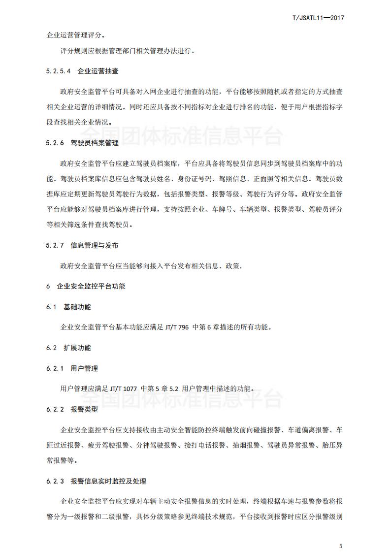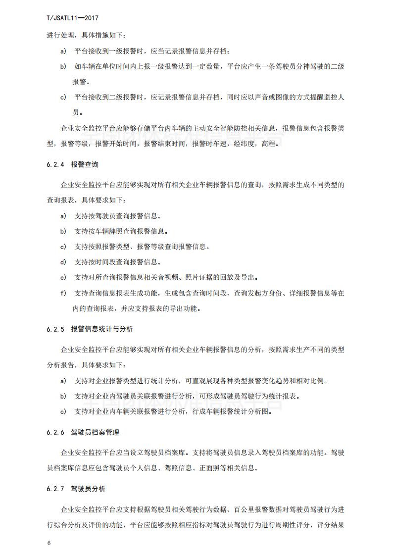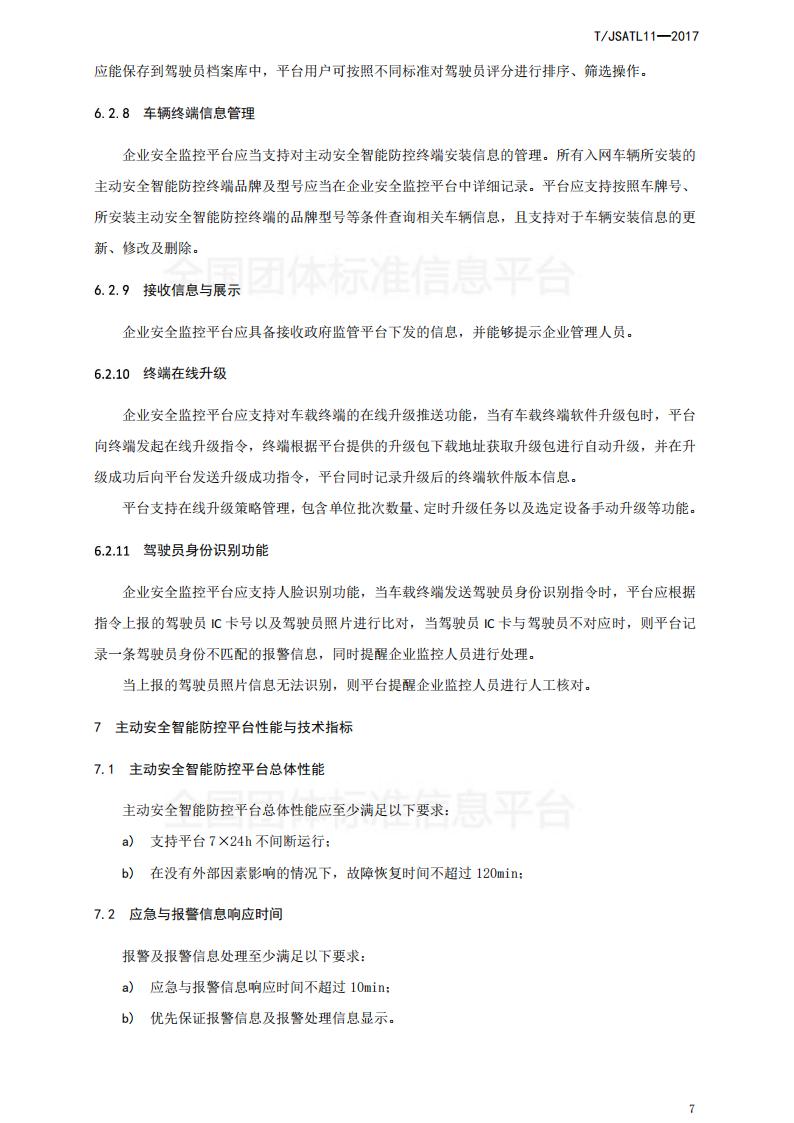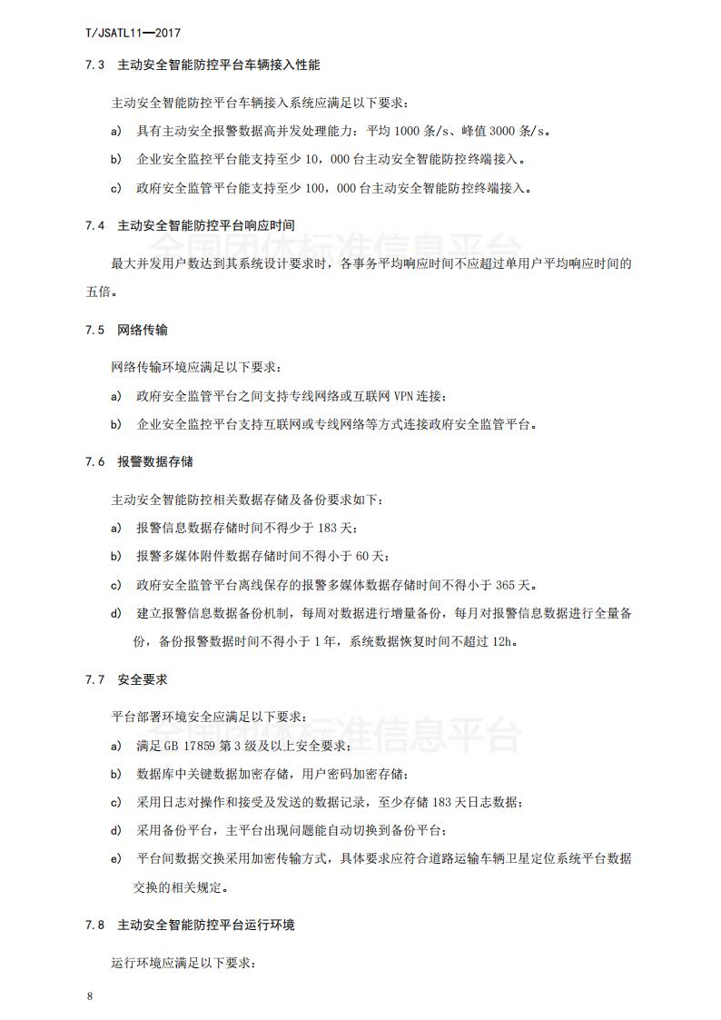 江蘇省 TJSATL 11-2017 道路運輸車輛主動安全智能防控系統(tǒng)(平臺技術規(guī)范)