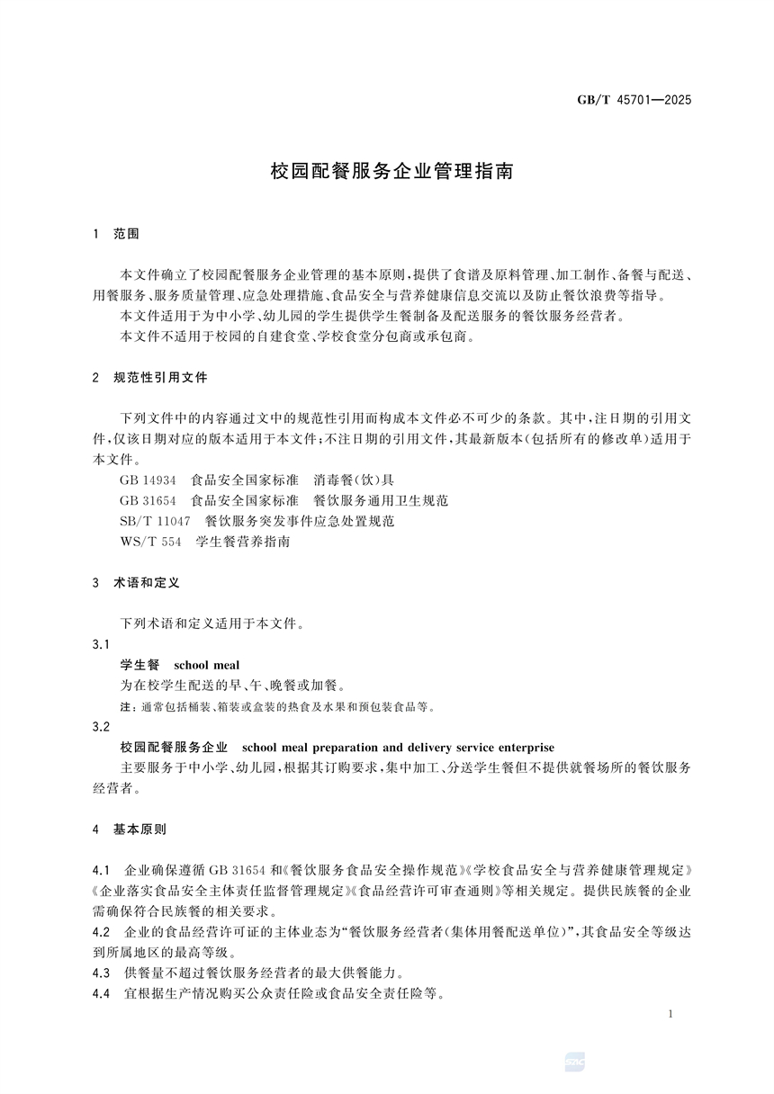 最新《校餐配餐服務(wù)企業(yè)管理指南》GB/T45071-2025文件下載鏈接如下: