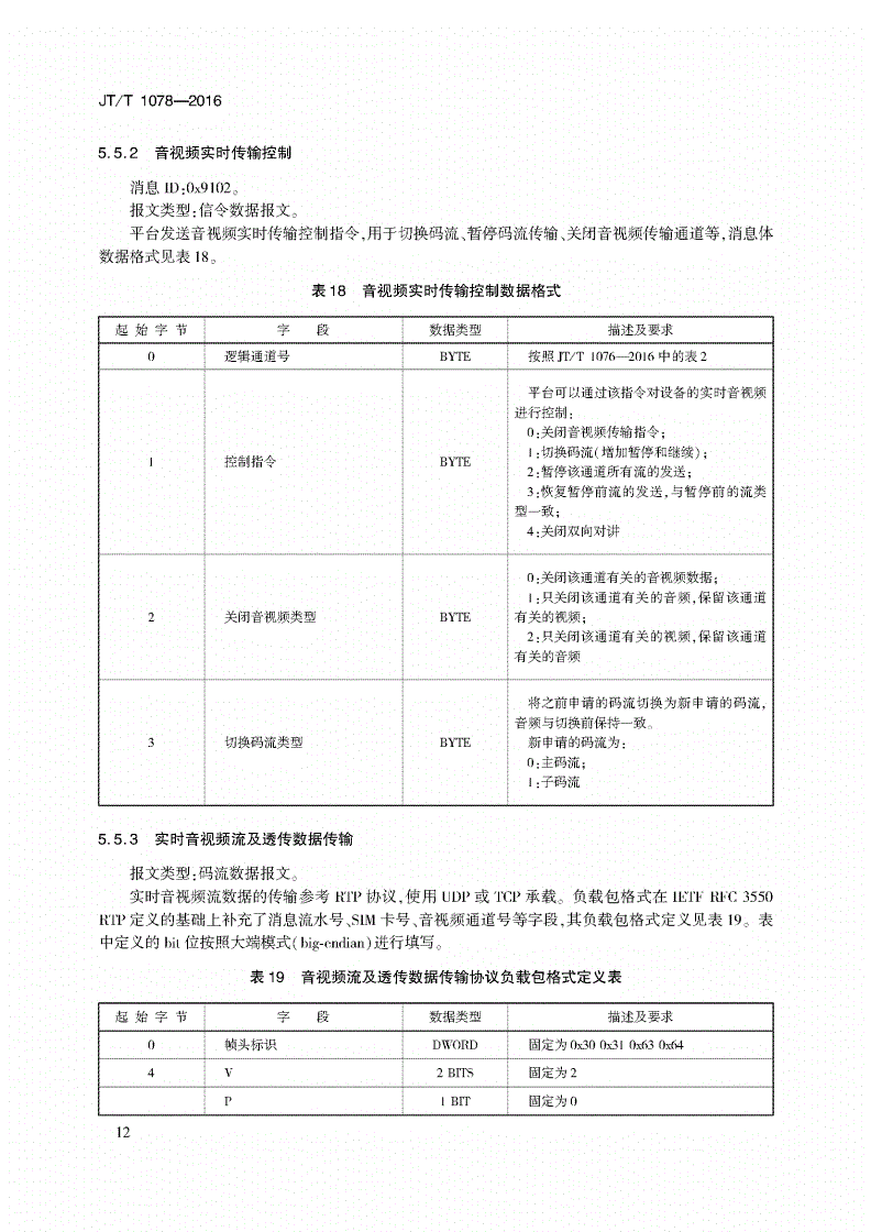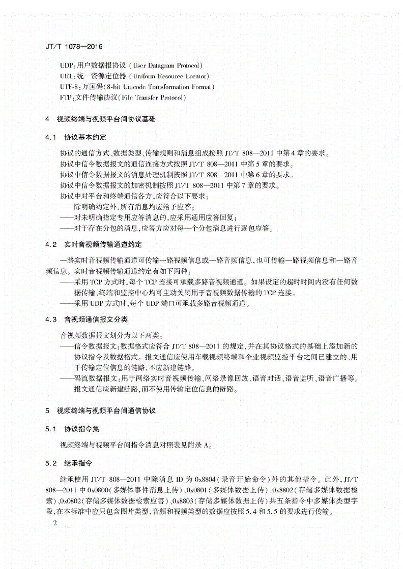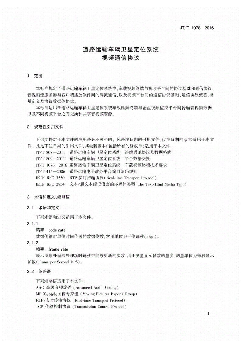 中華人民共和國(guó)交通運(yùn)輸行業(yè)標(biāo)準(zhǔn)JT/T1078-2016道路運(yùn)輸車輛衛(wèi)星定位系統(tǒng)視頻通信協(xié)議2
