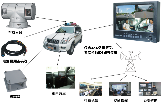 公安執(zhí)法部門為了有效對警用車輛的運(yùn)行狀況和公務(wù)人員的外出執(zhí)勤情況進(jìn)行監(jiān)督,規(guī)范執(zhí)法行為,提高執(zhí)法者安全防范意識和技防能力,提高執(zhí)法透明度,保護(hù)執(zhí)法者和被執(zhí)法者雙方的合法權(quán)益,提高調(diào)度指揮效率,使執(zhí)法車輛功能發(fā)揮最大作用,針對行業(yè)應(yīng)用需求,提出整套完善視頻監(jiān)控方案